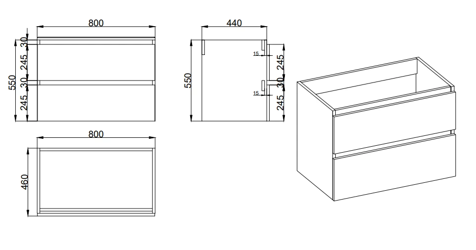 Let op: Het badkamermeubel is waterbestendig, maar niet waterdicht. Spatwater en andere gemorste vloeistoffen en spatten, moeten worden droog geveegd. Als je dit niet doet, kan dit de levensduur van het product verkorten en eventuele garanties ongeldig maken. Voor meer informatie, zie onze garantiebepaling.