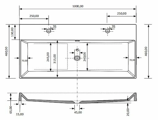 - Afmeting wastafel: 100x46x7cm