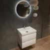 De spiegel uit deze set is de Saniclear Circle. Deze ronde spiegel is uitgerust met LED-verlichting én spiegelverwarming. Je bedient de spiegel door middel van de touch knop op de spiegel. Door één keer op de knop te drukken, activeer je de verlichting. Met twee keer drukken activeer je ook de spiegelverwarming. Ook kun je de spiegel dimmen door de knop ingedrukt te houden. Deze spiegel maakt jouw Kolo badkamermeubel compleet!
