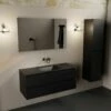 Let op: Het badkamermeubel is waterbestendig, maar niet waterdicht. Spatwater en andere gemorste vloeistoffen en spatten, moeten worden droog geveegd. Als je dit niet doet, kan dit de levensduur van het product verkorten en eventuele garanties ongeldig maken. Voor meer informatie, zie onze garantiebepaling.