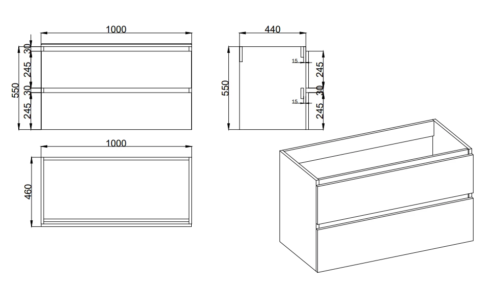 - Afmeting wastafel: 100x46x7cm