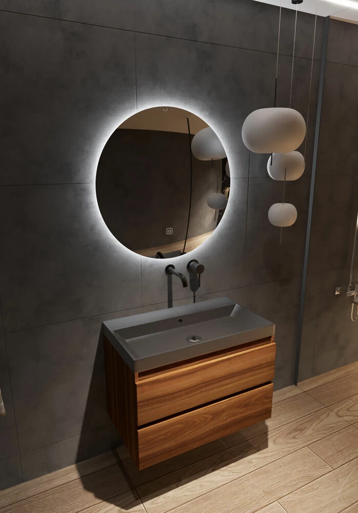 De spiegel uit deze set is de Saniclear Circle. Deze ronde spiegel is uitgerust met LED-verlichting én spiegelverwarming. Je bedient de spiegel door middel van de touch knop op de spiegel. Door één keer op de knop te drukken, activeer je de verlichting. Met twee keer drukken activeer je ook de spiegelverwarming. Ook kun je de spiegel dimmen door de knop ingedrukt te houden. Deze spiegel maakt jouw Kolo badkamermeubel compleet!