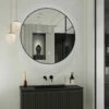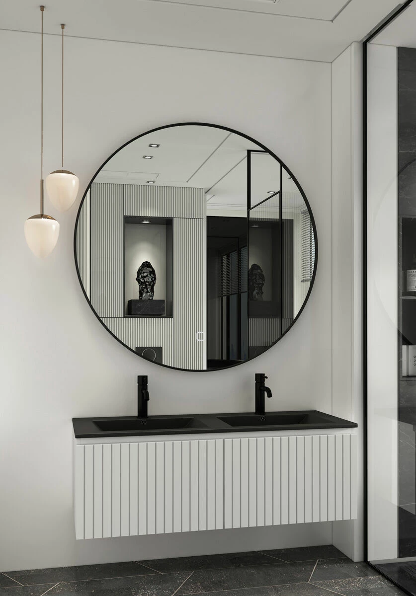 Nog een extraatje: De set komt met de gave, ronde, zwarte spiegel. De spiegel uit deze set is de Saniclear Circle Black. Deze ronde spiegel is uitgerust met een zwart frame, LED-verlichting én spiegelverwarming. Je bedient de spiegel door middel van de touch knop op de spiegel. Door één keer op de knop te drukken activeer je de verlichting, met twee keer drukken activeer je ook de spiegelverwarming. Ook kun je de spiegel dimmen door de knop ingedrukt te houden. Een perfecte combinatie met het meubel en daardoor een echt plaatje in jouw badkamer!