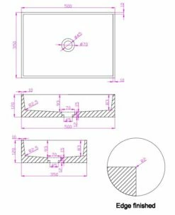 Het toppaneel heeft geen kraangat en afvoergat. Aan de voor- en achterkant zijn twee stalen stangen in het toppaneel verwerkt. Hierdoor wordt het toppaneel verstevigd. De stangen zijn 3cm van de kanten geplaatst. Met de diamantboren uit de toebehoren kun je een afvoergat en eventueel een kraangat in het toppaneel boren. De 74mm boor is geschikt voor een afvoergat en met de 35mm boor creëer je een perfect kraangat. Door zelf je gaten te boren, bepaal jij precies waar jij de waskom én het kraangat wilt hebben. Handig hé?