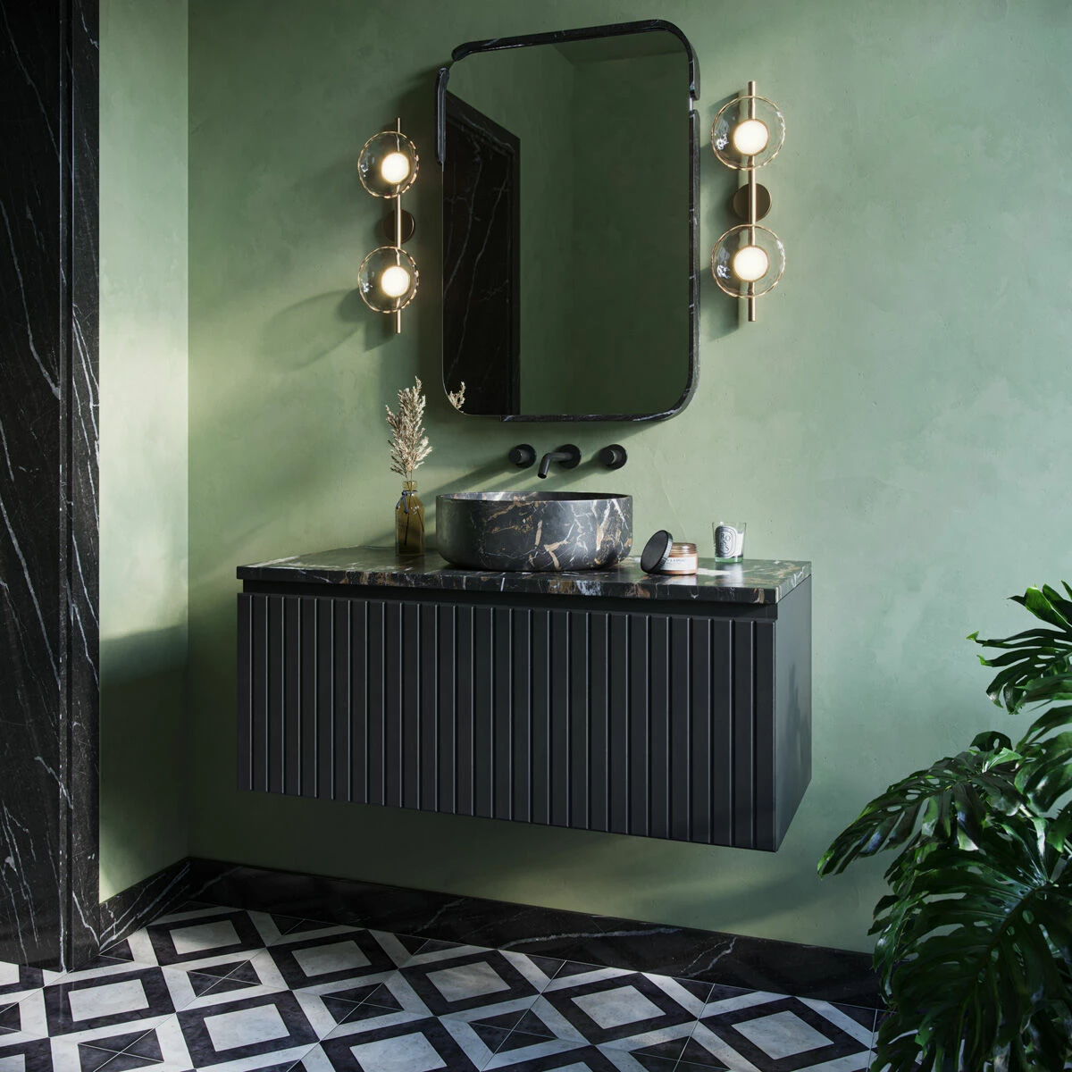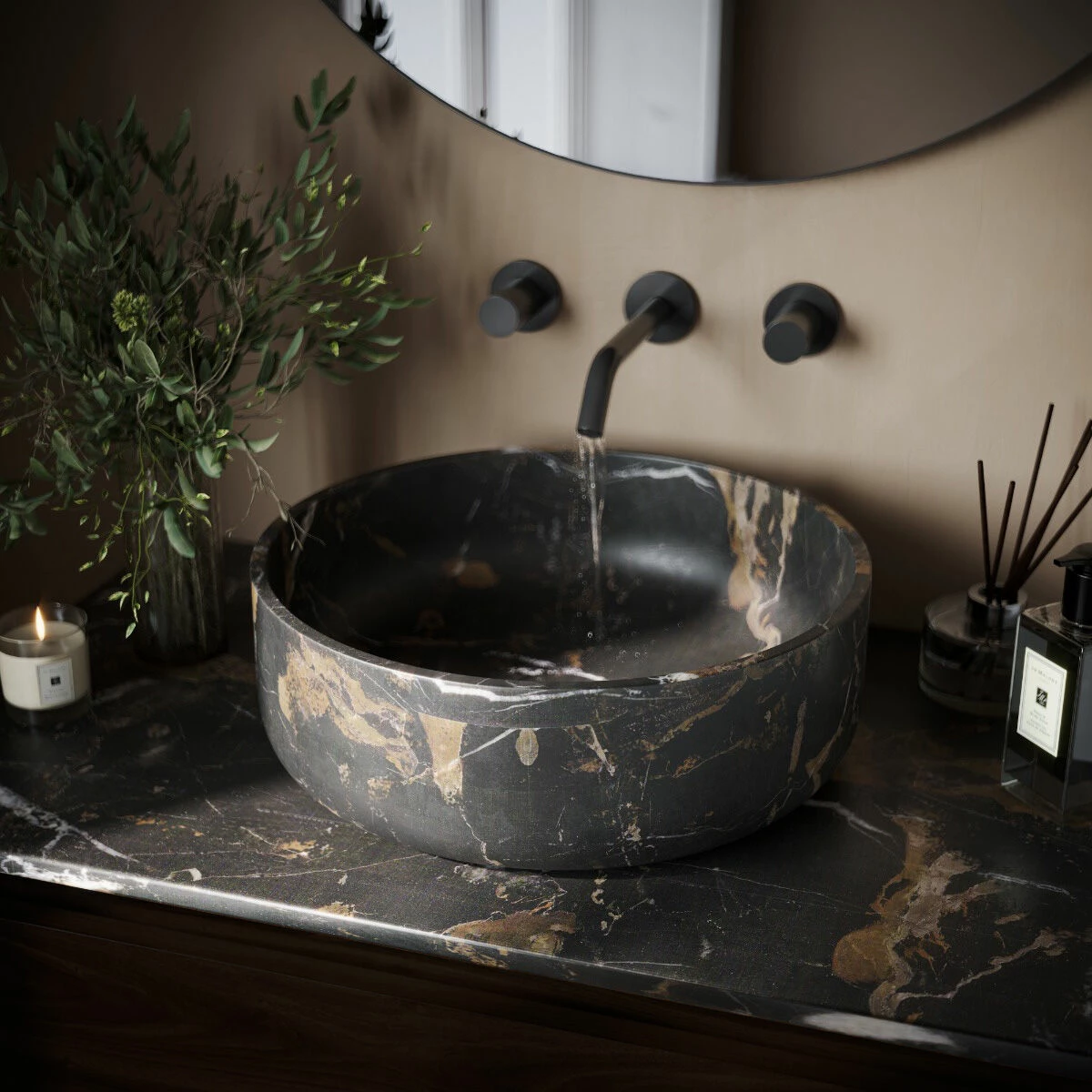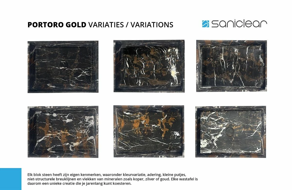 - Kleur waskom: Zwart marmer met goudgele en witte aders