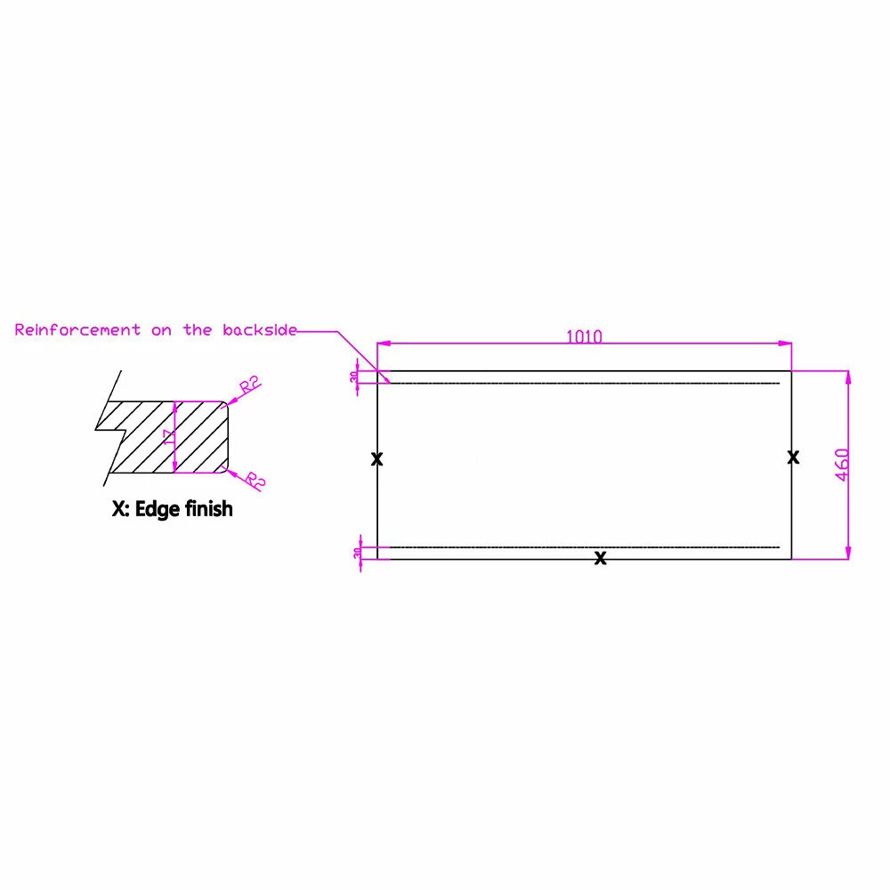 Het toppaneel heeft geen kraangat en afvoergat. Aan de voor- en achterkant zijn twee stalen stangen in het toppaneel verwerkt. Hierdoor wordt het toppaneel verstevigd. De stangen zijn 3cm van de kanten geplaatst. Met de diamantboren uit de toebehoren kun je een afvoergat en eventueel een kraangat in het toppaneel boren. De 74mm boor is geschikt voor een afvoergat en met de 35mm boor creëer je een perfect kraangat. Door zelf je gaten te boren, bepaal jij precies waar jij de waskom én het kraangat wilt hebben. Handig hé?
