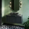 Let op: Het badkamermeubel is waterbestendig, maar niet waterdicht. Spatwater en andere gemorste vloeistoffen en spatten, moeten worden droog geveegd. Als je dit niet doet, kan dit de levensduur van het product verkorten en eventuele garanties ongeldig maken. Voor meer informatie, zie onze garantiebepaling.