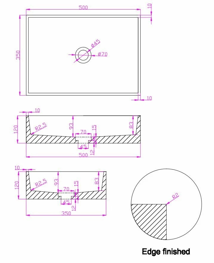 Het toppaneel heeft geen kraangat en afvoergat. Aan de voor- en achterkant zijn twee stalen stangen in het toppaneel verwerkt. Hierdoor wordt het toppaneel verstevigd. De stangen zijn 3cm van de kanten geplaatst. Met de diamantboren uit de toebehoren kun je een afvoergat en eventueel een kraangat in het toppaneel boren. De 74mm boor is geschikt voor een afvoergat en met de 35mm boor creëer je een perfect kraangat. Door zelf je gaten te boren, bepaal jij precies waar jij de waskom én het kraangat wilt hebben. Handig hé?