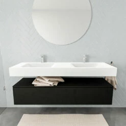 Het badmeubel heeft 2 lades waar je alle ruimte hebt om jouw spullen netjes op te bergen. De lades van het meubel hebben een softclose sluiting waardoor de lades geleidelijk en bijna geluidloos sluiten. Dit allemaal dankzij de Hettich ladegeleiders, één van de beste ladegeleiders die er bestaan. Zo ben jij verzekerd van een kwalitatief goed meubel.