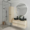 Een badkamer is niet compleet zonder een mooi én tijdloos badkamermeubel. Het merk Fontana heeft prachtige meubels uitgebracht waaronder deze parel. De Proma serie van Fontana bestaat uit een badkamermeubel in meerdere kleuren, die je kan combineren met de Fontana Rovigo kolomkast. Voor ’t gemak is het meubel al voorzien van matzwarte keramische waskommen én spiegel met LED-verlichting. Maak het badkamermeubel helemaal af met een bijpassende wastafelkranen. In het meubel zitten geen kraangaten. Zo kan je er zelf voor kiezen of je voor staande wastafelkranen of een inbouw wastafelkranen gaat.