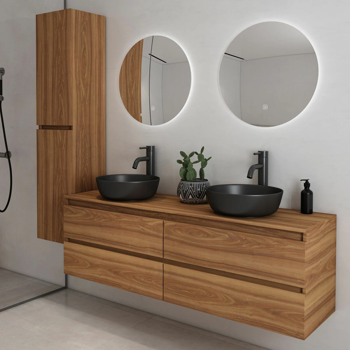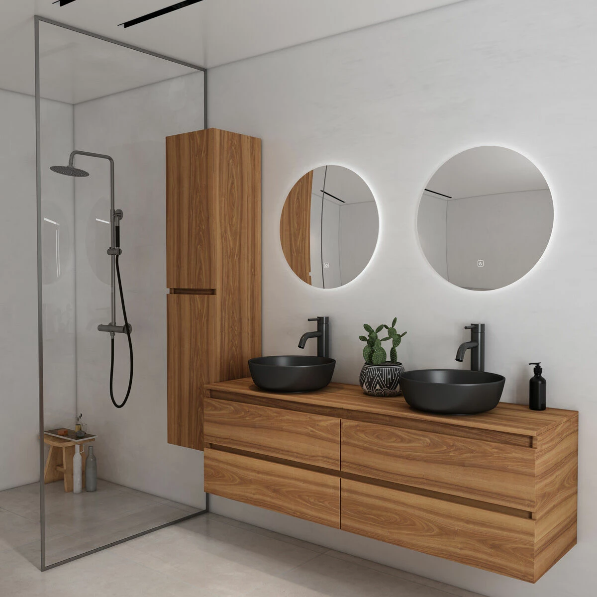 Een badkamer is niet compleet zonder een mooi én tijdloos badkamermeubel. Het merk Fontana heeft prachtige meubels uitgebracht waaronder deze parel. De Proma serie van Fontana bestaat uit een badkamermeubel in meerdere kleuren, die je kan combineren met de Fontana Rovigo kolomkast. Voor ’t gemak is het meubel al voorzien van matzwarte keramische waskommen én twee spiegels met LED-verlichting. Maak het badkamermeubel helemaal af met een bijpassende wastafelkranen. In het meubel zitten geen kraangaten. Zo kan je er zelf voor kiezen of je voor staande wastafelkranen of een inbouw wastafelkranen gaat.