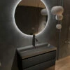 De spiegel uit deze set is de Saniclear Circle. Deze ronde spiegel is uitgerust met LED-verlichting én spiegelverwarming. Je bedient de spiegel door middel van de touch knop op de spiegel. Door één keer op de knop te drukken activeer je de verlichting, met twee keer drukken activeer je ook de spiegelverwarming. Ook kun je de spiegel dimmen door de knop ingedrukt te houden. Een echt plaatje in jouw badkamer dus!
