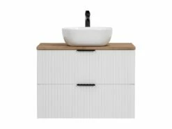 Let op: Het badkamermeubel is waterbestendig, maar niet waterdicht. Spatwater en andere gemorste vloeistoffen en spatten, moeten worden droog geveegd. Als je dit niet doet, kan dit de levensduur van het product verkorten en eventuele garanties ongeldig maken. Voor meer informatie, zie onze garantiebepaling.