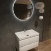 De spiegel uit deze set is de Saniclear Circle. Deze ronde spiegel is uitgerust met LED-verlichting én spiegelverwarming. Je bedient de spiegel door middel van de touch knop op de spiegel. Door één keer op de knop te drukken activeer je de verlichting, met twee keer drukken activeer je ook de spiegelverwarming. Ook kun je de spiegel dimmen door de knop ingedrukt te houden. Een echt plaatje in jouw badkamer dus!