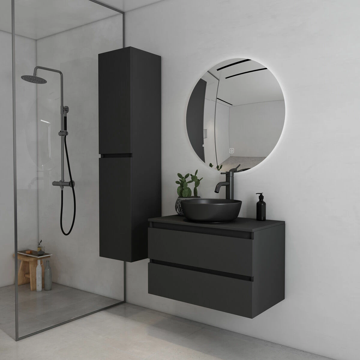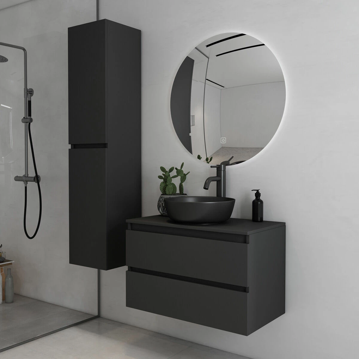 De spiegel uit deze set is de Saniclear Circle. Deze ronde spiegel is uitgerust met LED-verlichting én spiegelverwarming. Je bedient de spiegel door middel van de touch knop op de spiegel. Door één keer op de knop te drukken activeer je de verlichting, met twee keer drukken activeer je ook de spiegelverwarming. Ook kun je de spiegel dimmen door de knop ingedrukt te houden. Een echt plaatje in jouw badkamer dus!