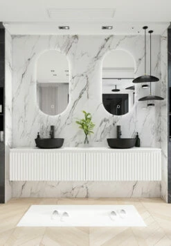 Een trend die we op dit moment veel zien, is de ribbel. Niet alleen in de woonkamer is dit een enorme trend (denk maar aan geribbelde kussentjes, bank met een ribbelstof en natuurlijk de rib-eetkamerstoelen), ook in de badkamer trekken we deze trend door. Fontana heeft een enorm toffe serie uitgebracht, namelijk de Stripe. Een badkamermeubel met een ribbelfront. Helemaal van deze tijd!