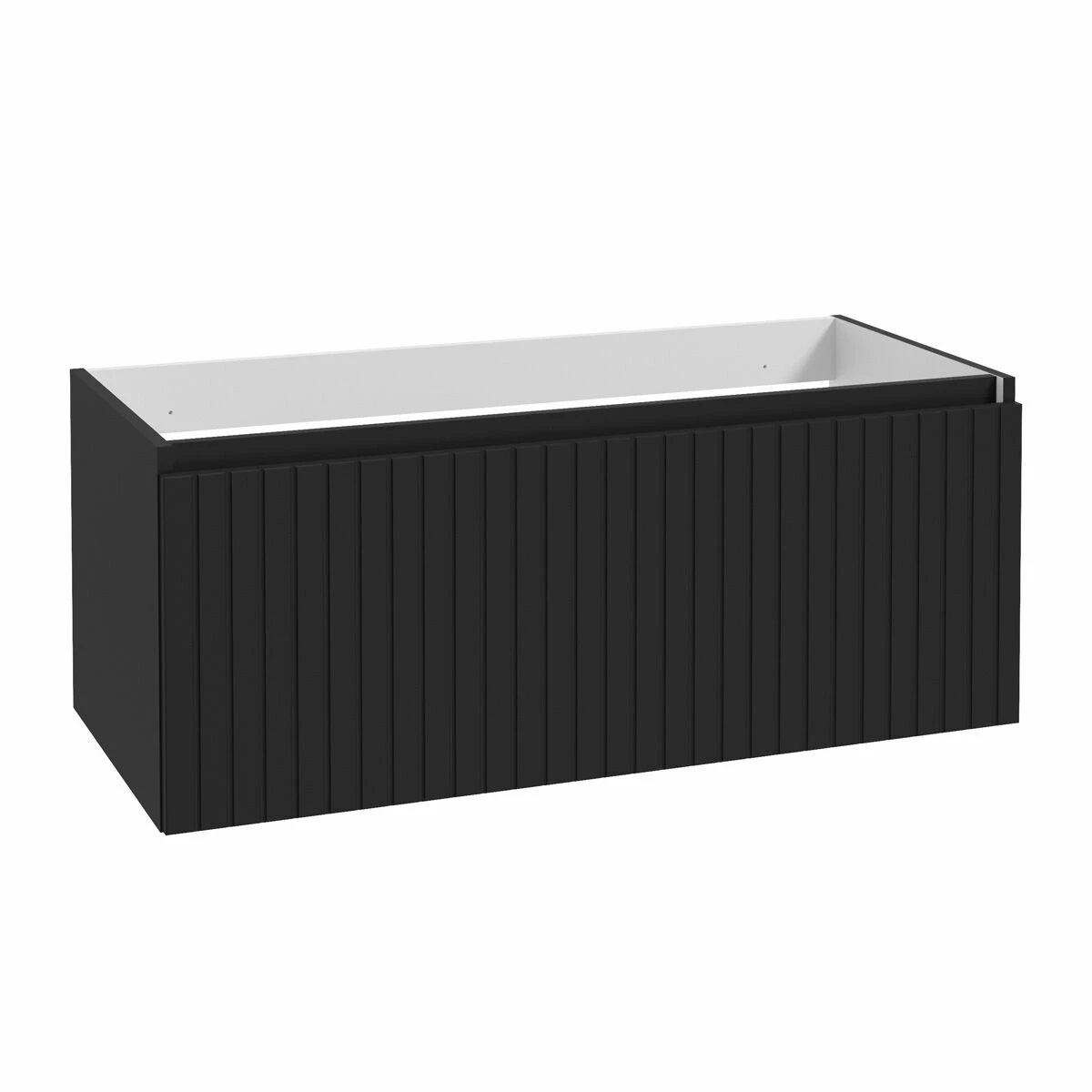Het badmeubel heeft een breedte van 100cm. Het heeft een chique uitstraling dankzij de ribbel en de greeploze lade. Duw de lade geruisloos dicht dankzij de softclose ladegeleiders. De ruimte in de lade van deze onderkast is ruim. Er zit geen uitsparing in de lade waardoor je alle ruimte van de lade kan benutten. Dit betekent wel dat je een ruimtebesparende sifon nodig hebt. Een ruimtebesparende sifon vind je onder de toebehoren.
