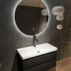 De spiegels uit deze set zijn de Saniclear Parma. Deze sfeervolle, ovale spiegel is uitgerust met LED-verlichting én spiegelverwarming. Je bedient de spiegel door middel van de touch knop op de spiegel. Door één keer op de knop te drukken activeer je de verlichting, met twee keer drukken activeer je ook de spiegelverwarming. Ook kun je de spiegels dimmen door de knop ingedrukt te houden. Een echt plaatje in jouw badkamer dus!