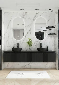 Een trend die we op dit moment veel zien, is de ribbel. Niet alleen in de woonkamer is dit een enorme trend (denk maar aan geribbelde kussentjes, bank met een ribbelstof en natuurlijk de rib-eetkamerstoelen), ook in de badkamer trekken we deze trend door. Fontana heeft een enorm toffe serie uitgebracht, namelijk de Stripe. Een badkamermeubel met een ribbelfront. Helemaal van deze tijd!