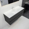 Met het Trend Line Compact greeploze badmeubel van Lambini Designs heeft u een mooie set. De kast wordt geleverd met mineraalmarmeren wasbak. Kijk bij de toebehoren om de set compleet te maken met een kraan en een afvoer.