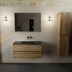 Niet alleen zorgt dit meubel met z’n eiken kleurtje voor een warme sfeer in je badkamer, je hebt ook nog eens genoeg ruimte om al je spullen netjes op te bergen! De onderkast heeft namelijk 2 ruime lades met een hoogte van 25cm. Extra fijn is dat de lades softclose sluiten. Dit betekent dat de lades geleidelijk aan sluiten en dus niet in één keer hard dichtklappen. Beter voor het meubel én je oren! Om ‘m nog net dat beetje extra te geven, hebben de lades een voelbare houtstructuur. Gaaf!