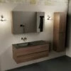 Het badmeubel wordt compleet geleverd met onderkast, wastafel en spiegelkast. De eiken kleur van de onderkast zorgt voor een warme sfeer in je badkamer. De wastafel is gemaakt van keramiek, ijzersterk materiaal dat kras- en slijtvast is. Door de gladde structuur van keramiek, is de wastafel ook nog eens hygiënisch. Er zijn namelijk geen gaatjes waar bacteriën zich kunnen nestelen. Ideaal met schoonmaken!
