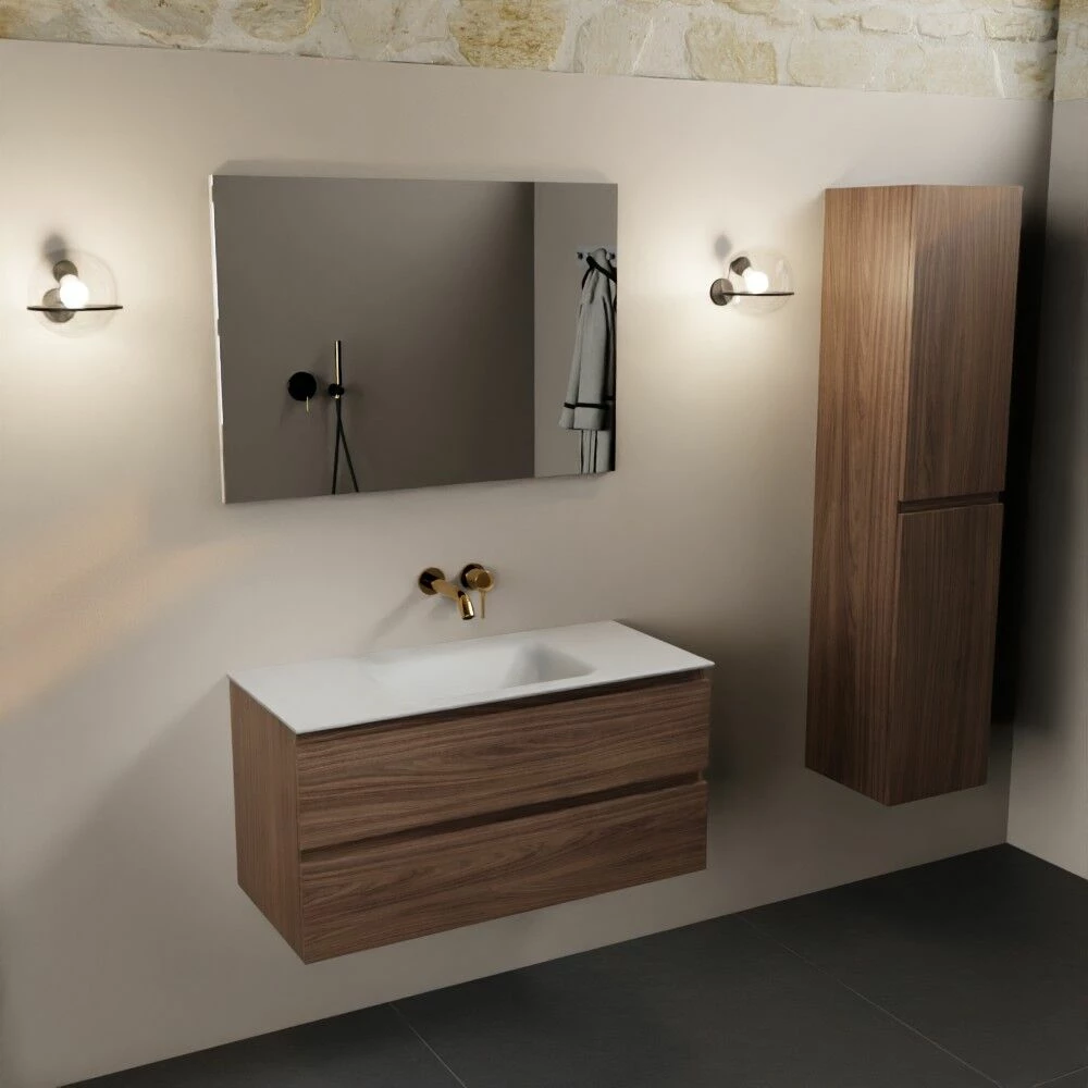 Niet alleen zorgt dit meubel met z’n eiken kleurtje voor een warme sfeer in je badkamer, je hebt ook nog eens genoeg ruimte om al je spullen netjes op te bergen! De onderkast heeft namelijk 2 ruime lades met een hoogte van 25cm. Extra fijn is dat de lades softclose sluiten. Dit betekent dat de lades geleidelijk aan sluiten en dus niet in één keer hard dichtklappen. Beter voor het meubel én je oren! Om ‘m nog net dat beetje extra te geven, hebben de lades een voelbare houtstructuur. Gaaf!