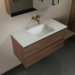De wastafel is gemaakt van solid surface, duurzaam materiaal met een matte uitstraling wat zorgt voor een luxe look. Solid surface is vlekwerend, vochtbestendig én hygiënisch. Dit materiaal heeft namelijk geen poriën waar vuil zich in kan nestelen, wat het schoonmaken ook een stuk eenvoudig maakt. Een ander pluspunt aan solid surface is dat eventuele kleine krasjes weg te schuren zijn. Kort gezegd is een wastafel van solid surface er dus eentje waar je jarenlang van kan genieten!