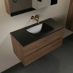Een frisse touch in je interieur, bij de badkamermeubels van Mondiaz Aivy ben je aan het juiste adres! De serie bestaat uit strakke meubels in verschillende maten, uitvoeringen en kleuren. Dus of je nu gaat voor een stoere look met zwart, tijdloos en strak wit of een warme sfeer met eiken, voor elke badkamer is er dé perfecte Aivy.