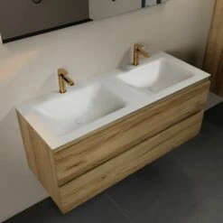 Niet alleen zorgt dit meubel met z’n eiken kleurtje voor een warme sfeer in je badkamer, je hebt ook nog eens genoeg ruimte om al je spullen netjes op te bergen! De onderkast heeft namelijk 2 ruime lades met een hoogte van 25cm. Extra fijn is dat de lades softclose sluiten. Dit betekent dat de lades geleidelijk aan sluiten en dus niet in één keer hard dichtklappen. Beter voor het meubel én je oren! Om ‘m nog net dat beetje extra te geven, hebben de lades een voelbare houtstructuur. Gaaf!