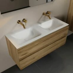 Niet alleen zorgt dit meubel met z’n eiken kleurtje voor een warme sfeer in je badkamer, je hebt ook nog eens genoeg ruimte om al je spullen netjes op te bergen! De onderkast heeft namelijk 2 ruime lades met een hoogte van 25cm. Extra fijn is dat de lades softclose sluiten. Dit betekent dat de lades geleidelijk aan sluiten en dus niet in één keer hard dichtklappen. Beter voor het meubel Ă©n je oren! Om ‘m nog net dat beetje extra te geven, hebben de lades een voelbare houtstructuur. Gaaf!