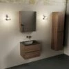 Niet alleen zorgt dit meubel met z’n eiken kleurtje voor een warme sfeer in je badkamer, je hebt ook nog eens genoeg ruimte om al je spullen netjes op te bergen! De onderkast heeft namelijk 2 ruime lades met een hoogte van 25cm. Extra fijn is dat de lades softclose sluiten. Dit betekent dat de lades geleidelijk aan sluiten en dus niet in één keer hard dichtklappen. Beter voor het meubel én je oren! Doordat dit meubel compleet met spiegelkast is, heb je ook in dit kastje nog ruimte om je spullen in op te bergen. Hoe fijn is dat!? Om ‘m nog net dat beetje extra te geven, hebben de lades en zijkant van de spiegelkast een voelbare houtstructuur. Gaaf!