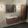 Niet alleen zorgt dit meubel met z’n eiken kleurtje voor een warme sfeer in je badkamer, je hebt ook nog eens genoeg ruimte om al je spullen netjes op te bergen! De onderkast heeft namelijk 2 ruime lades met een hoogte van 25cm. Extra fijn is dat de lades softclose sluiten. Dit betekent dat de lades geleidelijk aan sluiten en dus niet in één keer hard dichtklappen. Beter voor het meubel Ă©n je oren! Om ‘m nog net dat beetje extra te geven, hebben de lades een voelbare houtstructuur. Gaaf!