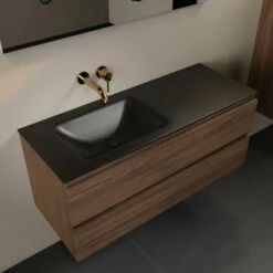 De wastafel is gemaakt van solid surface, duurzaam materiaal met een matte uitstraling wat zorgt voor een luxe look. Solid surface is vlekwerend, vochtbestendig én hygiënisch. Dit materiaal heeft namelijk geen poriën waar vuil zich in kan nestelen, wat het schoonmaken ook een stuk eenvoudig maakt. Een ander pluspunt aan solid surface is dat eventuele kleine krasjes weg te schuren zijn. Kort gezegd is een wastafel van solid surface er dus eentje waar je jarenlang van kan genieten!