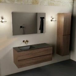 Niet alleen zorgt dit meubel met z’n eiken kleurtje voor een warme sfeer in je badkamer, je hebt ook nog eens genoeg ruimte om al je spullen netjes op te bergen! De onderkast heeft namelijk 2 ruime lades met een hoogte van 25cm. Extra fijn is dat de lades softclose sluiten. Dit betekent dat de lades geleidelijk aan sluiten en dus niet in één keer hard dichtklappen. Beter voor het meubel én je oren! Om ‘m nog net dat beetje extra te geven, hebben de lades een voelbare houtstructuur. Gaaf!