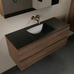 De wastafel is gemaakt van solid surface, duurzaam materiaal met een matte uitstraling wat zorgt voor een luxe look. Solid surface is vlekwerend, vochtbestendig én hygiënisch. Dit materiaal heeft namelijk geen poriën waar vuil zich in kan nestelen, wat het schoonmaken ook een stuk eenvoudig maakt. Een ander pluspunt aan solid surface is dat eventuele kleine krasjes weg te schuren zijn. Kort gezegd is een wastafel van solid surface er dus eentje waar je jarenlang van kan genieten!