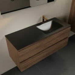 De wastafel is gemaakt van solid surface, duurzaam materiaal met een matte uitstraling wat zorgt voor een luxe look. Solid surface is vlekwerend, vochtbestendig én hygiënisch. Dit materiaal heeft namelijk geen poriën waar vuil zich in kan nestelen, wat het schoonmaken ook een stuk eenvoudig maakt. Een ander pluspunt aan solid surface is dat eventuele kleine krasjes weg te schuren zijn. Kort gezegd is een wastafel van solid surface er dus eentje waar je jarenlang van kan genieten!