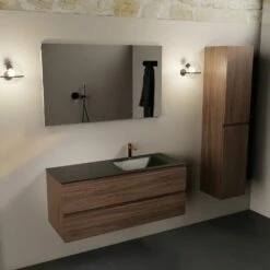 Een frisse touch in je interieur, bij de badkamermeubels van Mondiaz Aivy ben je aan het juiste adres! De serie bestaat uit strakke meubels in verschillende maten, uitvoeringen en kleuren. Dus of je nu gaat voor een stoere look met zwart, tijdloos en strak wit of een warme sfeer met eiken, voor elke badkamer is er dé perfecte Aivy.
