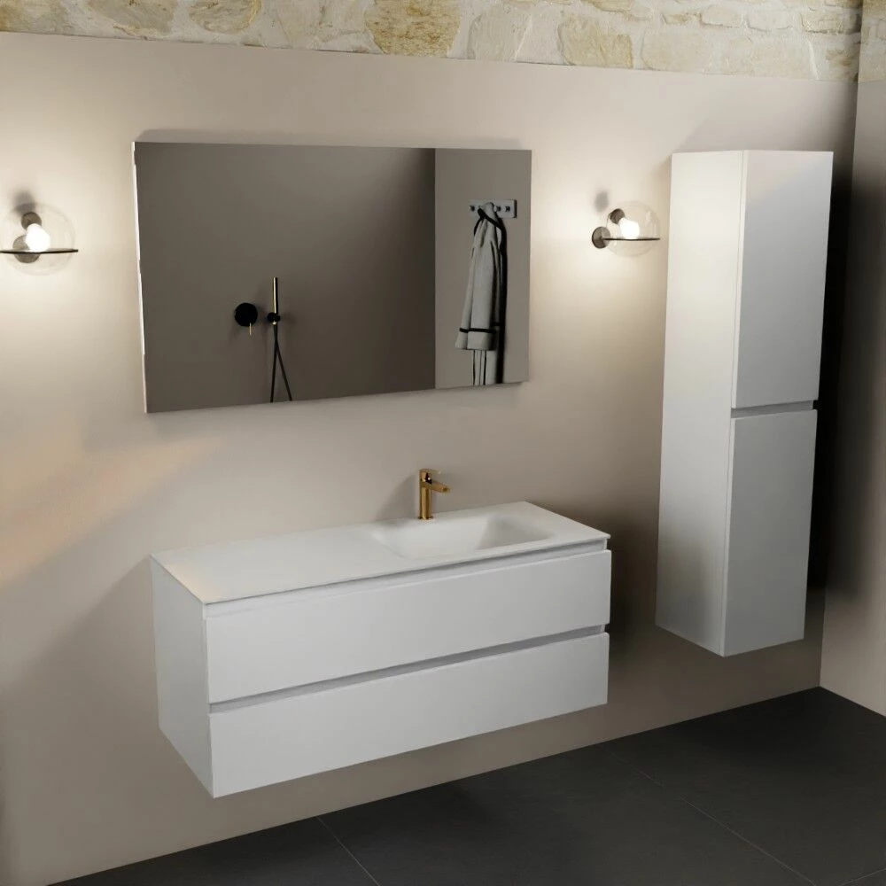 De wastafel is gemaakt van solid surface, duurzaam materiaal met een matte uitstraling wat zorgt voor een luxe look. Solid surface is vlekwerend, vochtbestendig én hygiënisch. Dit materiaal heeft namelijk geen poriën waar vuil zich in kan nestelen, wat het schoonmaken ook een stuk eenvoudig maakt. Een ander pluspunt aan solid surface is dat eventuele kleine krasjes weg te schuren zijn. Kort gezegd is een wastafel van solid surface er dus eentje waar je jarenlang van kan genieten!