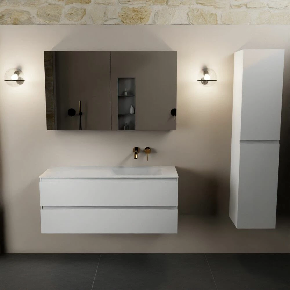 Niet alleen zorgt dit meubel voor gave looks, je hebt ook nog eens genoeg ruimte om al je spullen netjes op te bergen! De onderkast heeft namelijk 2 ruime lades met een hoogte van 25cm. Extra fijn is dat de lades softclose sluiten. Dit betekent dat de lades geleidelijk aan sluiten en dus niet in één keer hard dichtklappen. Beter voor het meubel én je oren! Doordat dit meubel compleet met spiegelkast is, heb je ook in dit kastje nog ruimte om je spullen in op te bergen. Hoe fijn is dat!?