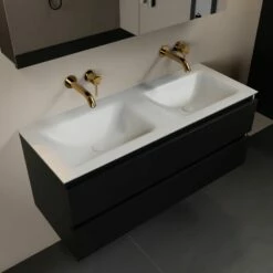 De wastafel is gemaakt van solid surface, duurzaam materiaal met een matte uitstraling wat zorgt voor een luxe look. Solid surface is vlekwerend, vochtbestendig én hygiënisch. Dit materiaal heeft namelijk geen poriën waar vuil zich in kan nestelen, wat het schoonmaken ook een stuk eenvoudig maakt. Een ander pluspunt aan solid surface is dat eventuele kleine krasjes weg te schuren zijn. Kort gezegd is een wastafel van solid surface er dus eentje waar je jarenlang van kan genieten!