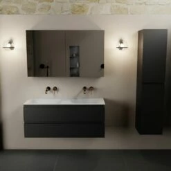 Niet alleen zorgt dit meubel voor gave looks, je hebt ook nog eens genoeg ruimte om al je spullen netjes op te bergen! De onderkast heeft namelijk 2 ruime lades met een hoogte van 25cm. Extra fijn is dat de lades softclose sluiten. Dit betekent dat de lades geleidelijk aan sluiten en dus niet in één keer hard dichtklappen. Beter voor het meubel én je oren! Doordat dit meubel compleet met spiegelkast is, heb je ook in dit kastje nog ruimte om je spullen in op te bergen. Hoe fijn is dat!?