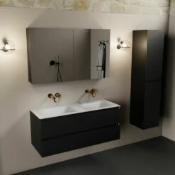 Niet alleen zorgt dit meubel voor gave looks, je hebt ook nog eens genoeg ruimte om al je spullen netjes op te bergen! De onderkast heeft namelijk 2 ruime lades met een hoogte van 25cm. Extra fijn is dat de lades softclose sluiten. Dit betekent dat de lades geleidelijk aan sluiten en dus niet in één keer hard dichtklappen. Beter voor het meubel én je oren! Doordat dit meubel compleet met spiegelkast is, heb je ook in dit kastje nog ruimte om je spullen in op te bergen. Hoe fijn is dat!?