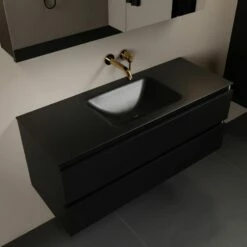De wastafel is gemaakt van solid surface, duurzaam materiaal met een matte uitstraling wat zorgt voor een luxe look. Solid surface is vlekwerend, vochtbestendig én hygiënisch. Dit materiaal heeft namelijk geen poriën waar vuil zich in kan nestelen, wat het schoonmaken ook een stuk eenvoudig maakt. Een ander pluspunt aan solid surface is dat eventuele kleine krasjes weg te schuren zijn. Kort gezegd is een wastafel van solid surface er dus eentje waar je jarenlang van kan genieten!