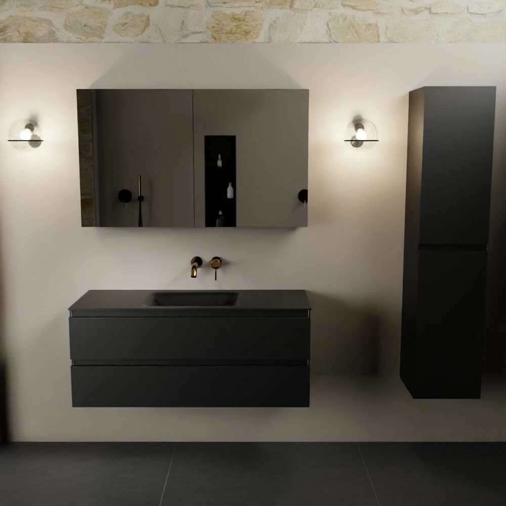 Een frisse touch in je interieur, bij de badkamermeubels van Mondiaz Aivy ben je aan het juiste adres! De serie bestaat uit strakke meubels in verschillende maten, uitvoeringen en kleuren. Dus of je nu gaat voor een stoere look met zwart, tijdloos en strak wit of een warme sfeer met eiken, voor elke badkamer is er dé perfecte Aivy.