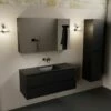 Niet alleen zorgt dit meubel voor gave looks, je hebt ook nog eens genoeg ruimte om al je spullen netjes op te bergen! De onderkast heeft namelijk 2 ruime lades met een hoogte van 25cm. Extra fijn is dat de lades softclose sluiten. Dit betekent dat de lades geleidelijk aan sluiten en dus niet in één keer hard dichtklappen. Beter voor het meubel én je oren! Doordat dit meubel compleet met spiegelkast is, heb je ook in dit kastje nog ruimte om je spullen in op te bergen. Hoe fijn is dat!?