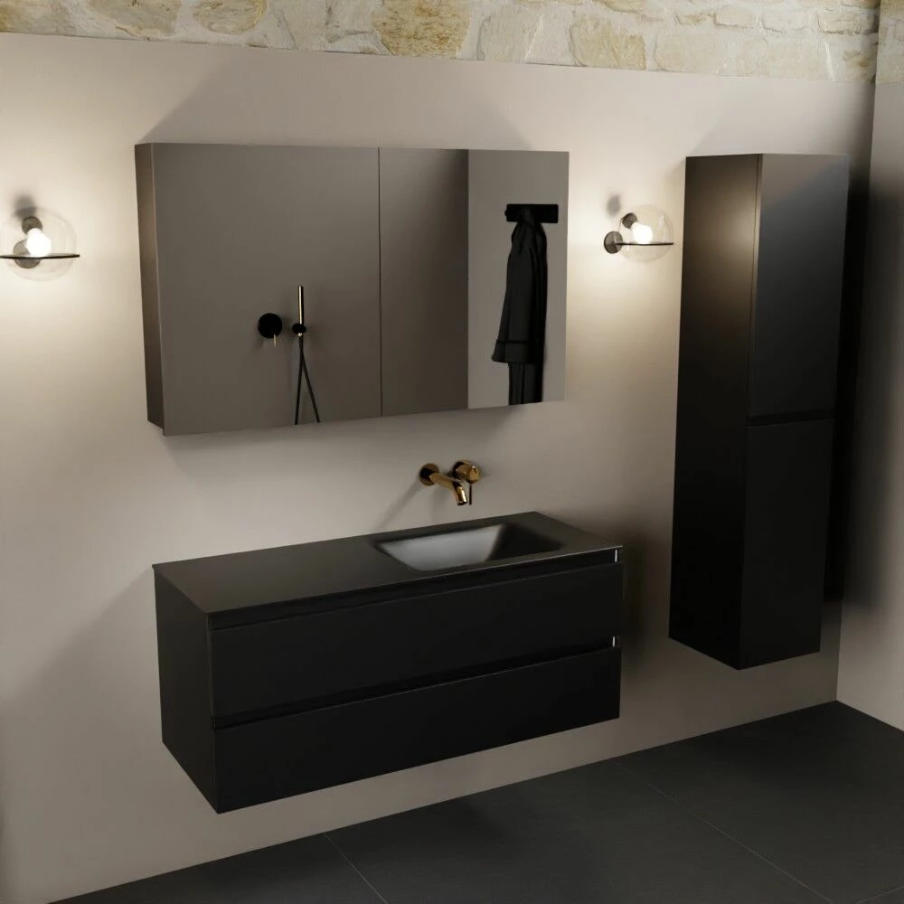Een frisse touch in je interieur, bij de badkamermeubels van Mondiaz Aivy ben je aan het juiste adres! De serie bestaat uit strakke meubels in verschillende maten, uitvoeringen en kleuren. Dus of je nu gaat voor een stoere look met zwart, tijdloos en strak wit of een warme sfeer met eiken, voor elke badkamer is er dé perfecte Aivy.