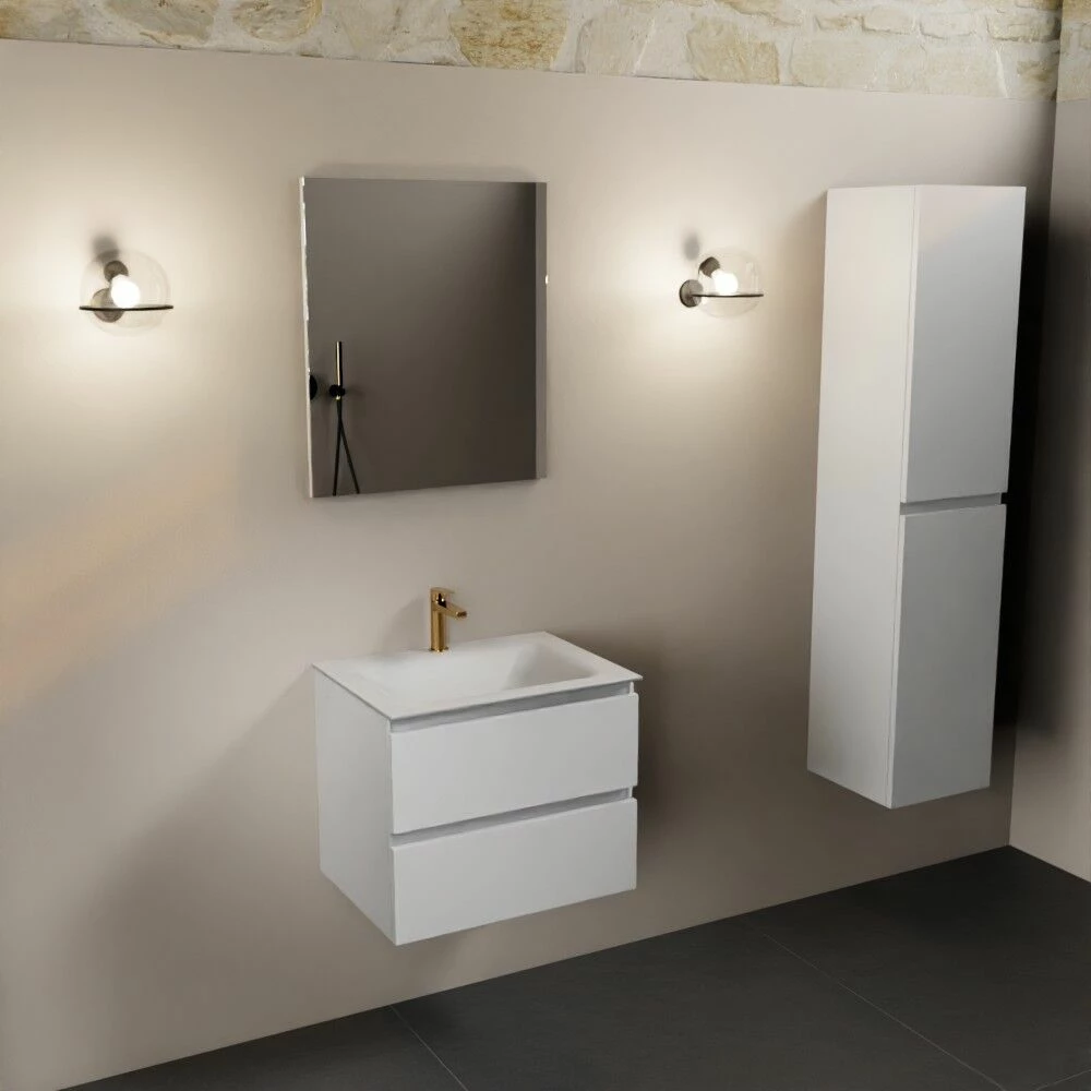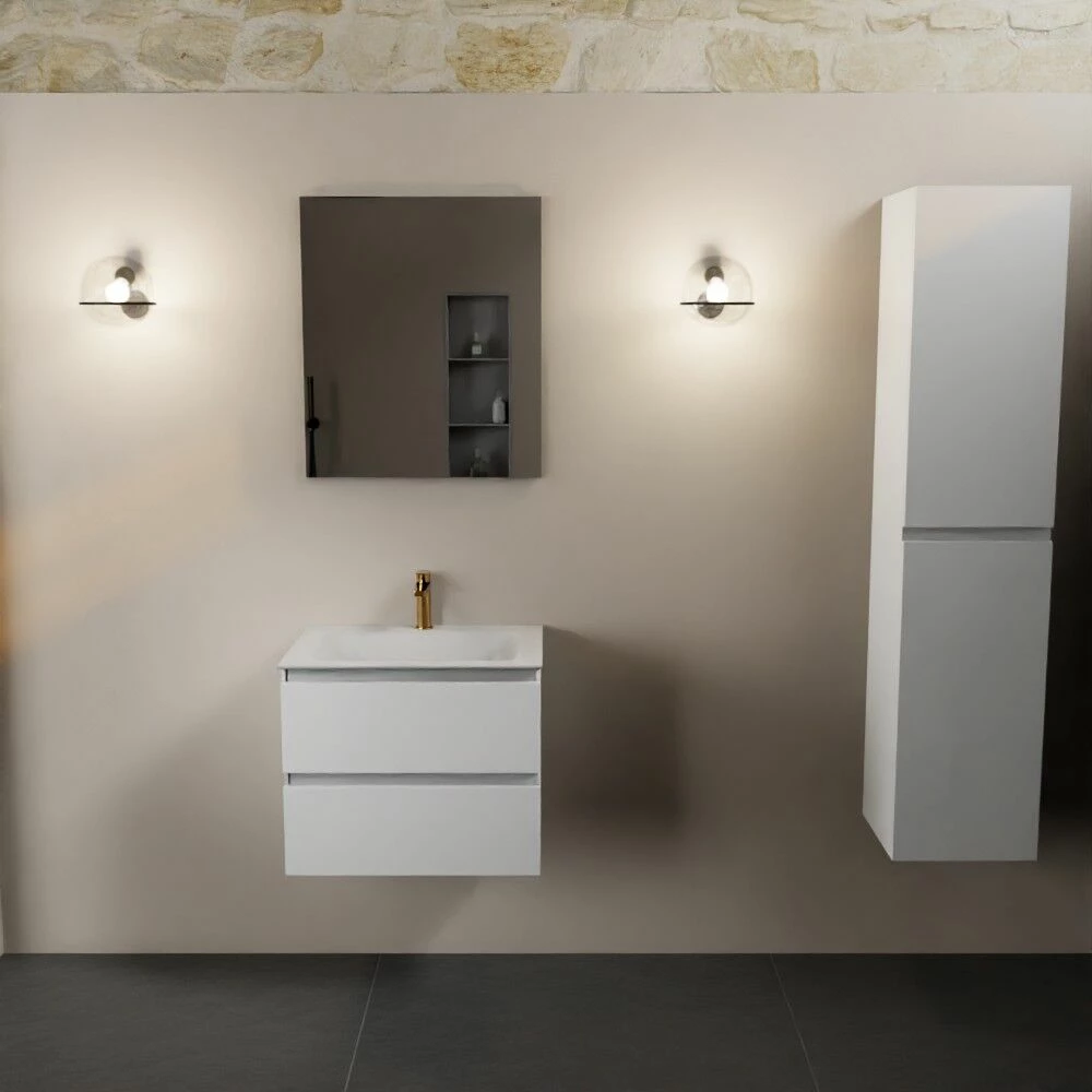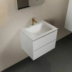 De wastafel is gemaakt van solid surface, duurzaam materiaal met een matte uitstraling wat zorgt voor een luxe look. Solid surface is vlekwerend, vochtbestendig én hygiënisch. Dit materiaal heeft namelijk geen poriën waar vuil zich in kan nestelen, wat het schoonmaken ook een stuk eenvoudig maakt. Een ander pluspunt aan solid surface is dat eventuele kleine krasjes weg te schuren zijn. Kort gezegd is een wastafel van solid surface er dus eentje waar je jarenlang van kan genieten!