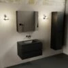 Niet alleen zorgt dit meubel voor gave looks, je hebt ook nog eens genoeg ruimte om al je spullen netjes op te bergen! De onderkast heeft namelijk 2 ruime lades met een hoogte van 25cm. Extra fijn is dat de lades softclose sluiten. Dit betekent dat de lades geleidelijk aan sluiten en dus niet in één keer hard dichtklappen. Beter voor het meubel én je oren! Doordat dit meubel compleet met spiegelkast is, heb je ook in dit kastje nog ruimte om je spullen in op te bergen. Hoe fijn is dat!?