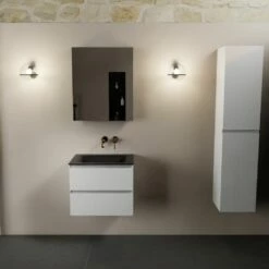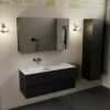 Niet alleen zorgt dit meubel voor gave looks, je hebt ook nog eens genoeg ruimte om al je spullen netjes op te bergen! De onderkast heeft namelijk 2 ruime lades met een hoogte van 25cm. Extra fijn is dat de lades softclose sluiten. Dit betekent dat de lades geleidelijk aan sluiten en dus niet in één keer hard dichtklappen. Beter voor het meubel én je oren! Doordat dit meubel compleet met spiegelkast is, heb je ook in dit kastje nog ruimte om je spullen in op te bergen. Hoe fijn is dat!?